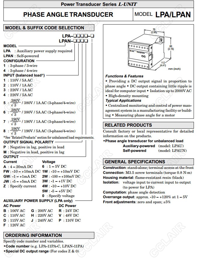 LPA,LPA-11PA-C,LPAN-11PA,LPA-11,LPAN-11,LPA-12,LPAN-12,LPA-13,相角信號變換器(平衡電路用)