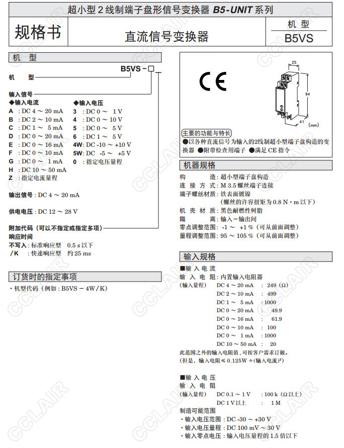 B5VS,B5VS-4W/K,B5VS-A,B5VS-B,B5VS-C,B5VS-D,B5VS-E,B5VS-F,B5VS-G,B5VS-H,直流信號(hào)變換器
