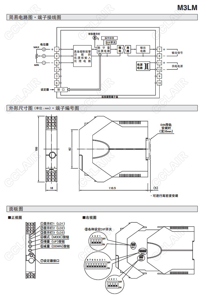 M3LM,M3LM-R4/A,M3LM-R4/B,M3LM-R4/A/UL,M3LM-R4/B/UL,電位器信號變換器(按鍵設定型)