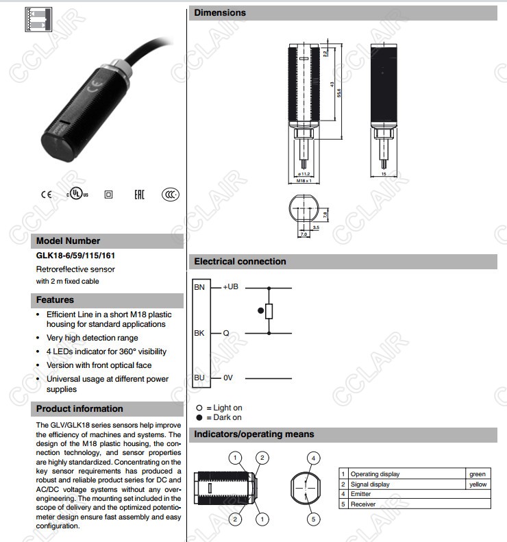 GLK18-6/25/115/161,GLK18-6/59/115/161,反射板型光電開關(guān)