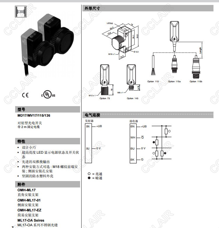 MD17/MV17/115/136,MD17/MV17/115b/136,對射型光電開關(guān)