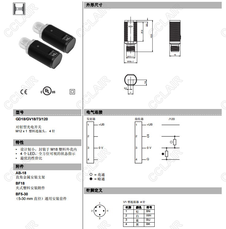 GD18/GV18/73/120,對射光電開關