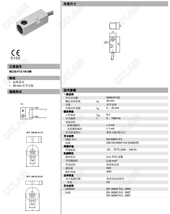 MJ35-F12-1N-5M,磁式接近開關(guān)
