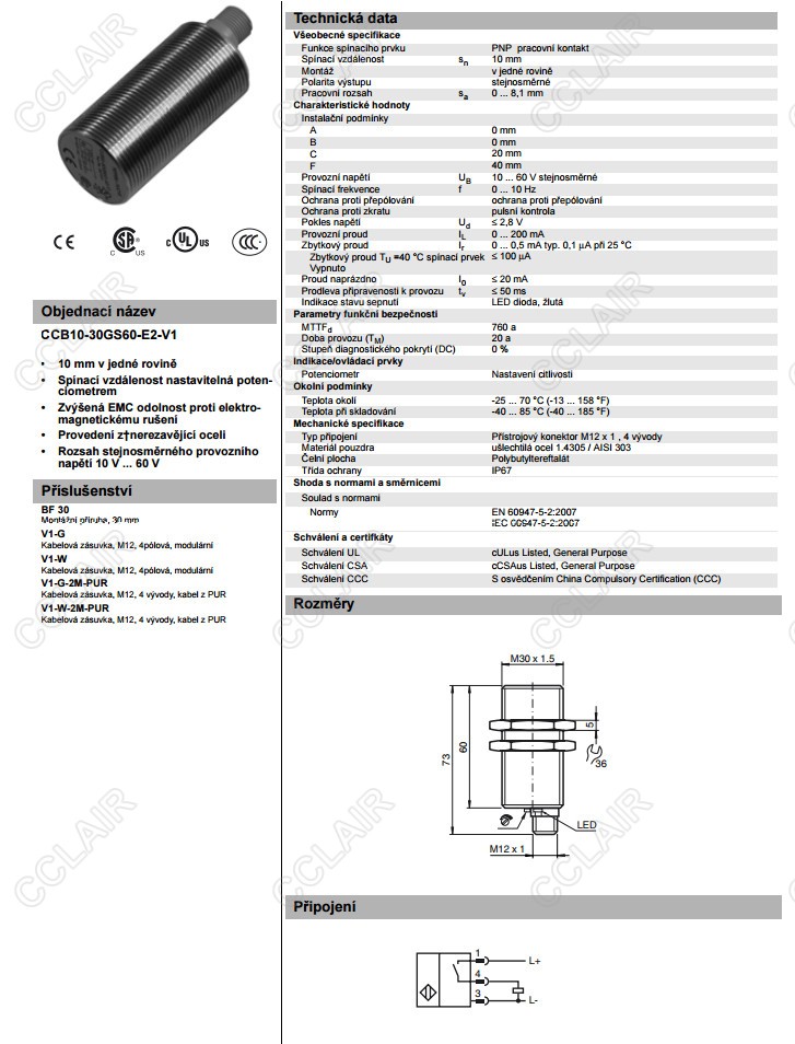CCB10-30GS60-E2-V1,電容式接近開關(guān)