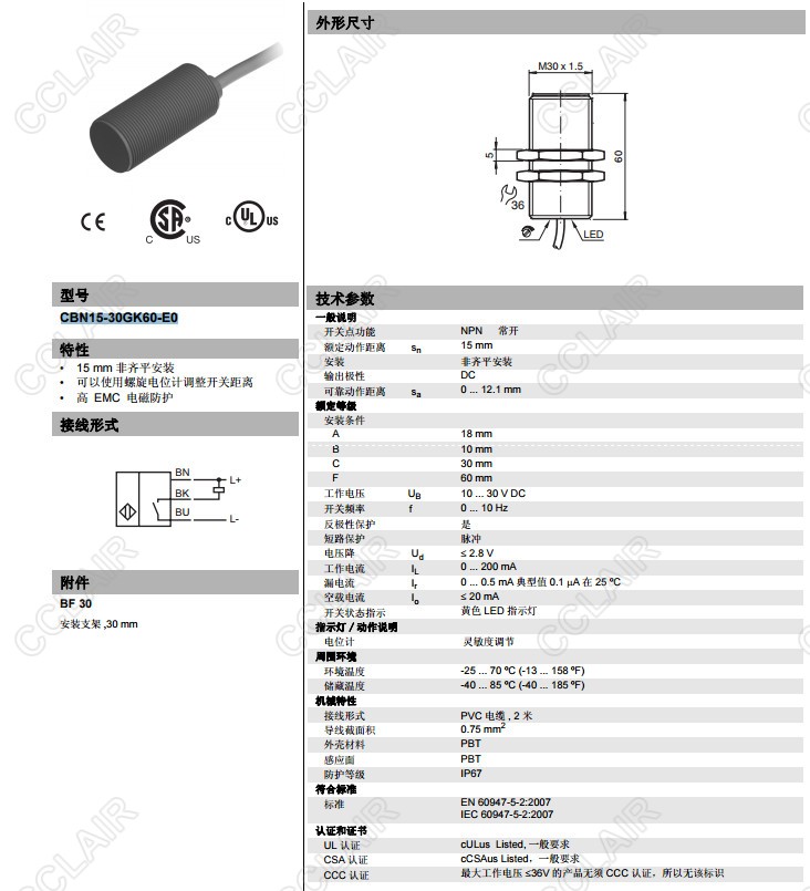 CBN15-30GK60-E0,電容式接近開(kāi)關(guān)