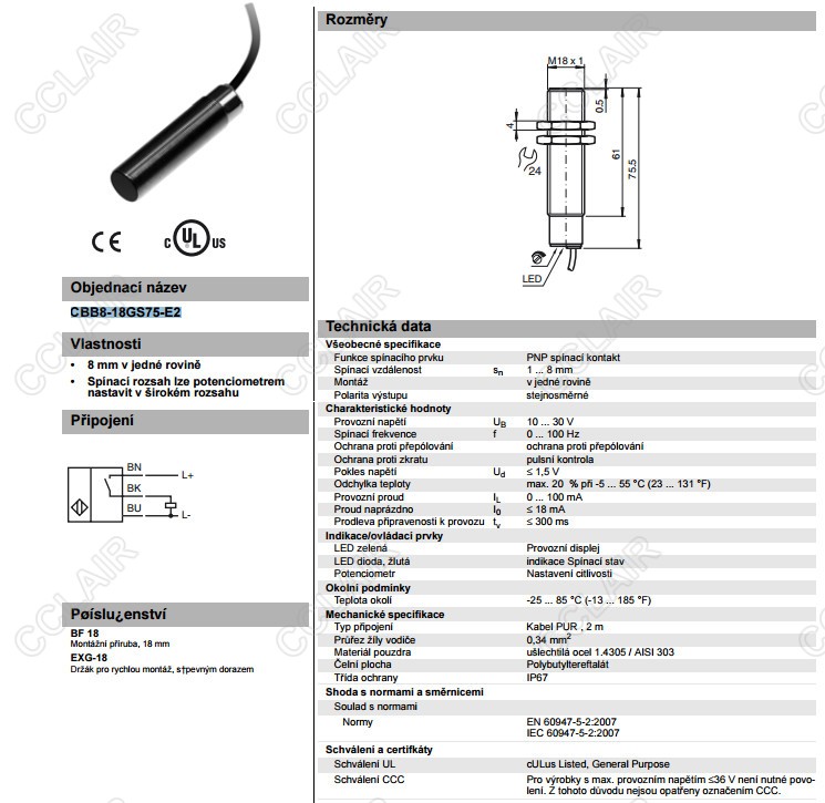 CBB8-18GS75-E2,電容式接近開關(guān)