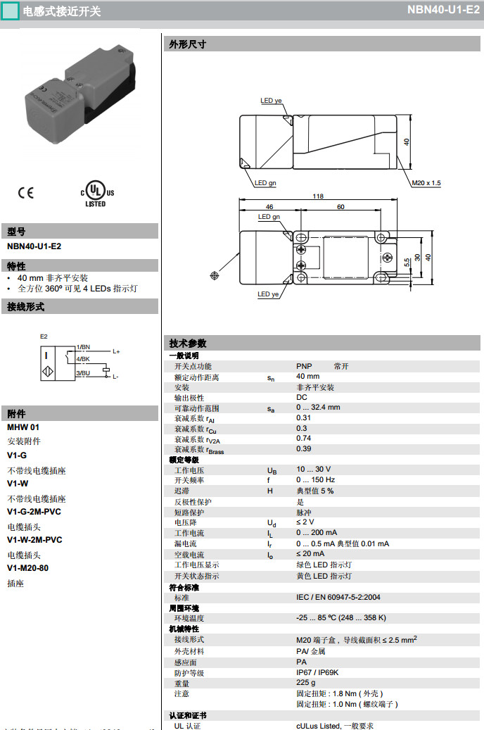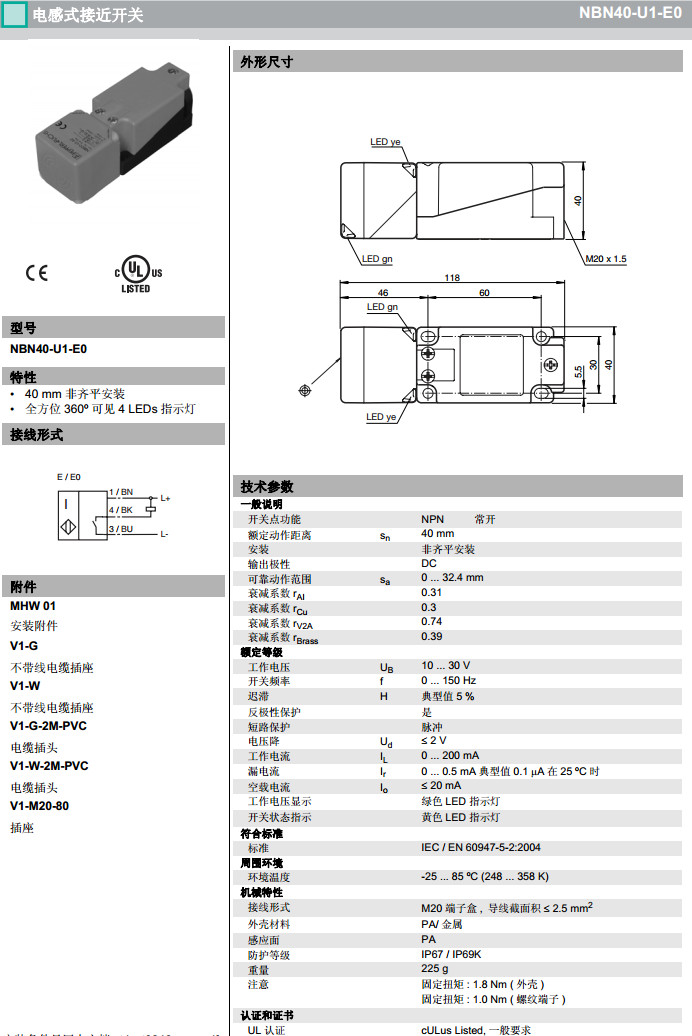 NBN40-U1-A2,NBN40-U1-E0,NBN40-U1-E2,NBN40-U1-Z2電感式接近開關(guān)