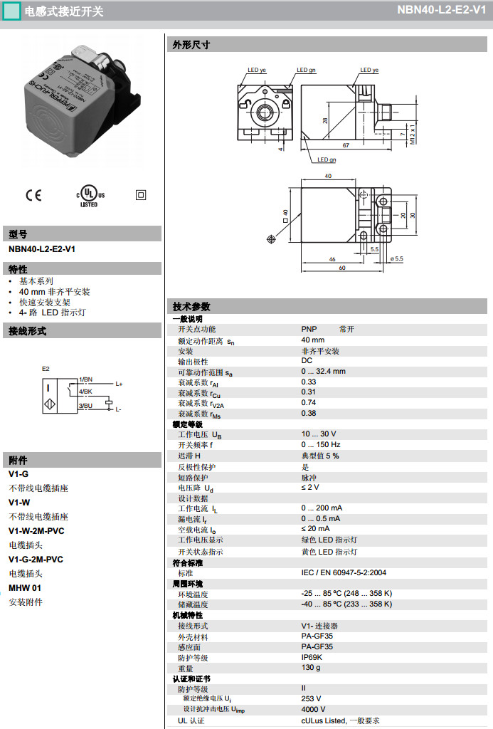 NBN40-L2-A2-V1,NBN40-L2-E0-V1,NBN40-L2-E2-V1,電感式接近開(kāi)關(guān)