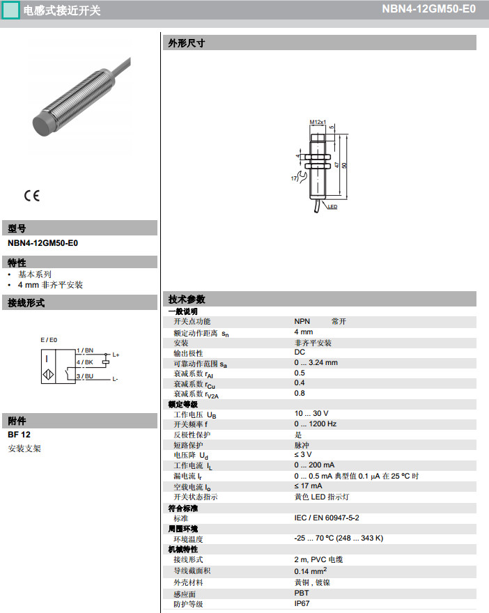 NBN4-12GM50-E0,NBN4-12GM50-E2電感式接近開關(guān)