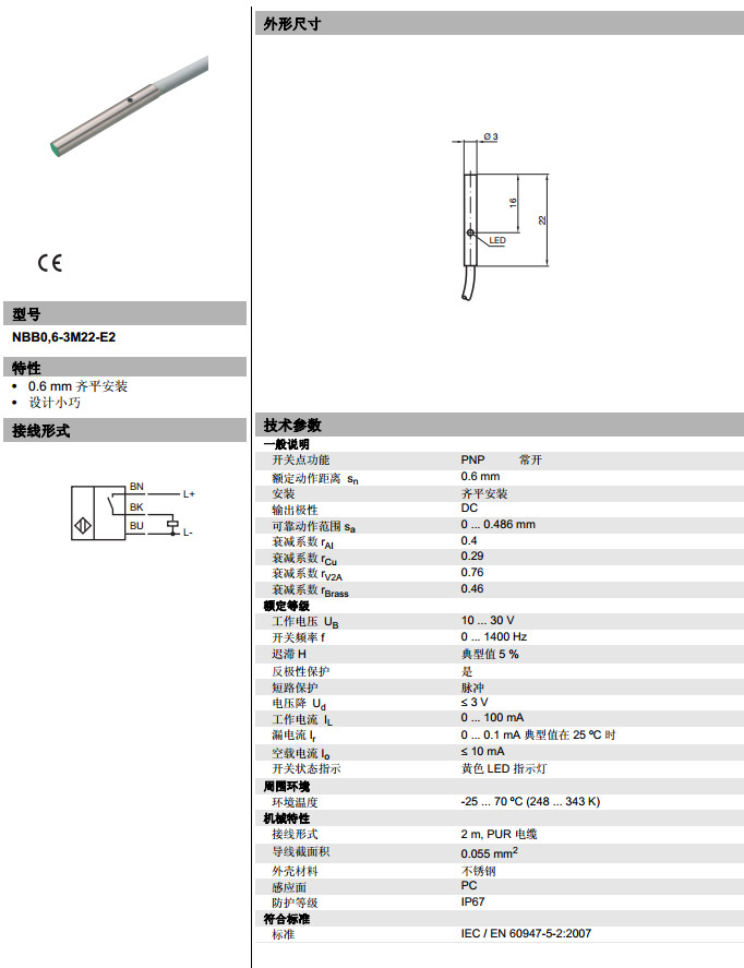 NBB0,6-3M22-E2電感式接近開關(guān)