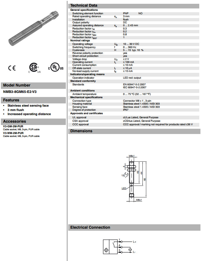 NMB3-8GM65-E2-V3電感式接近開(kāi)關(guān)