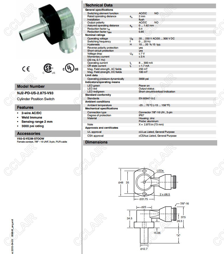 NJ2-PD-US-2.875-V93,NJ2-PD-US-4.562-V93,電感式接近開(kāi)關(guān)