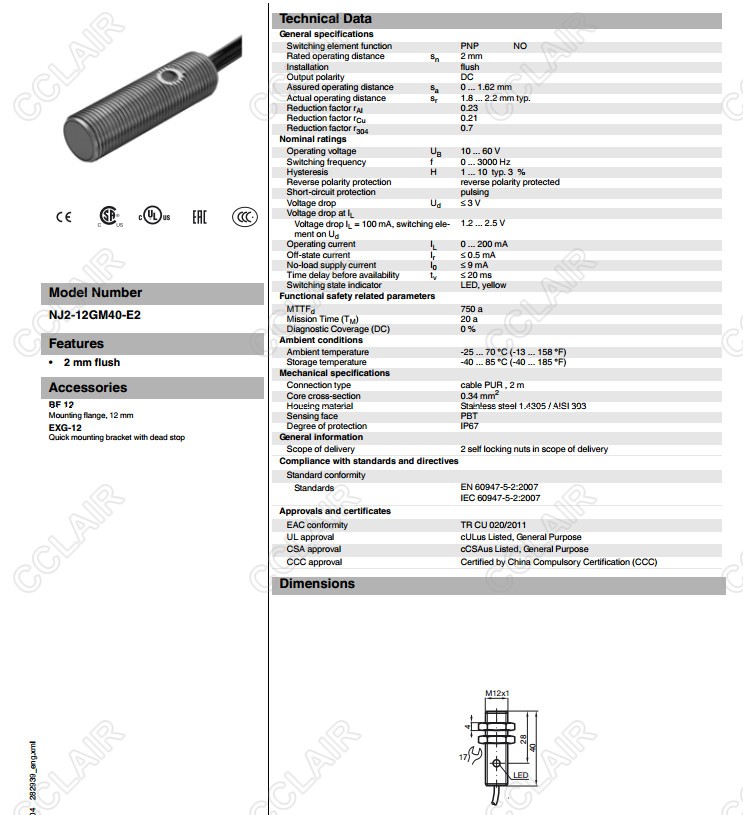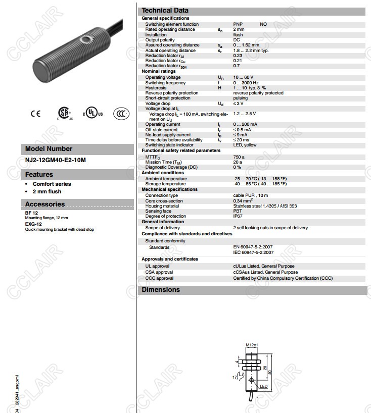 NJ2-12GM40-E2,NJ2-12GM40-E2-10M,NJ2-12GM40-E2-5M