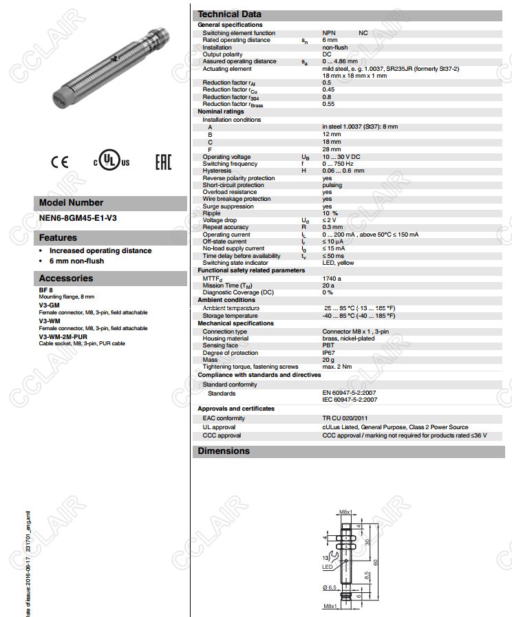 NEN6-8GM45-E1-V3,電感式接近開關(guān)