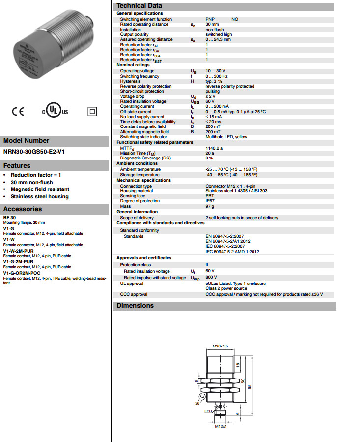 NRN30-30GS50-E2-V1電感式接近開(kāi)關(guān)
