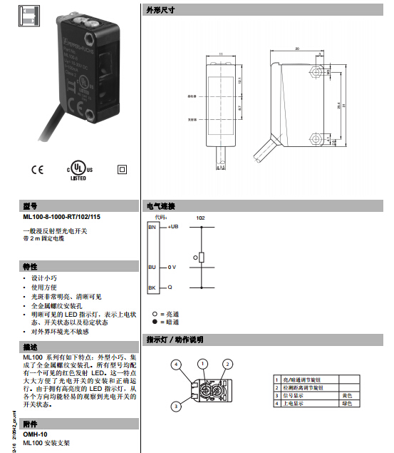 ML100-8-1000-RT/102/115,漫反射型傳感器