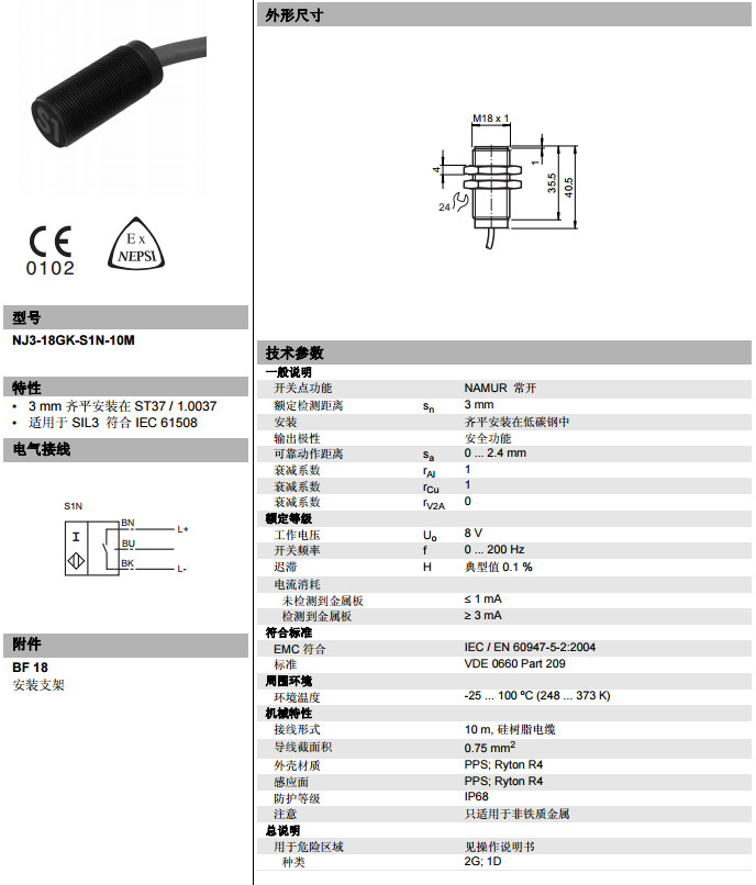 NJ3-18GK-S1N-10M電感式接近開關(guān)