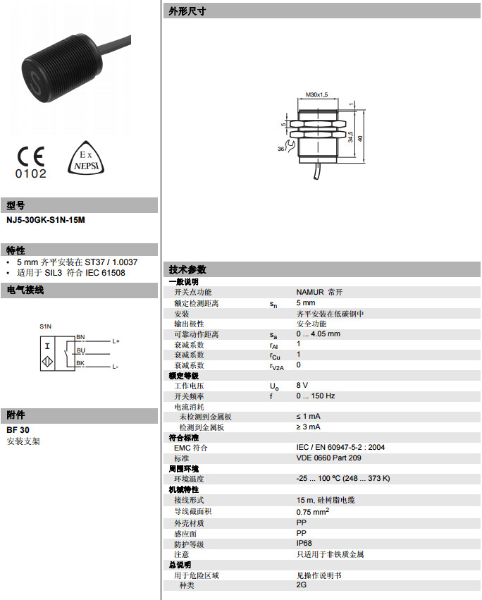 NJ5-30GK-S1N-15M電感式接近開(kāi)關(guān)