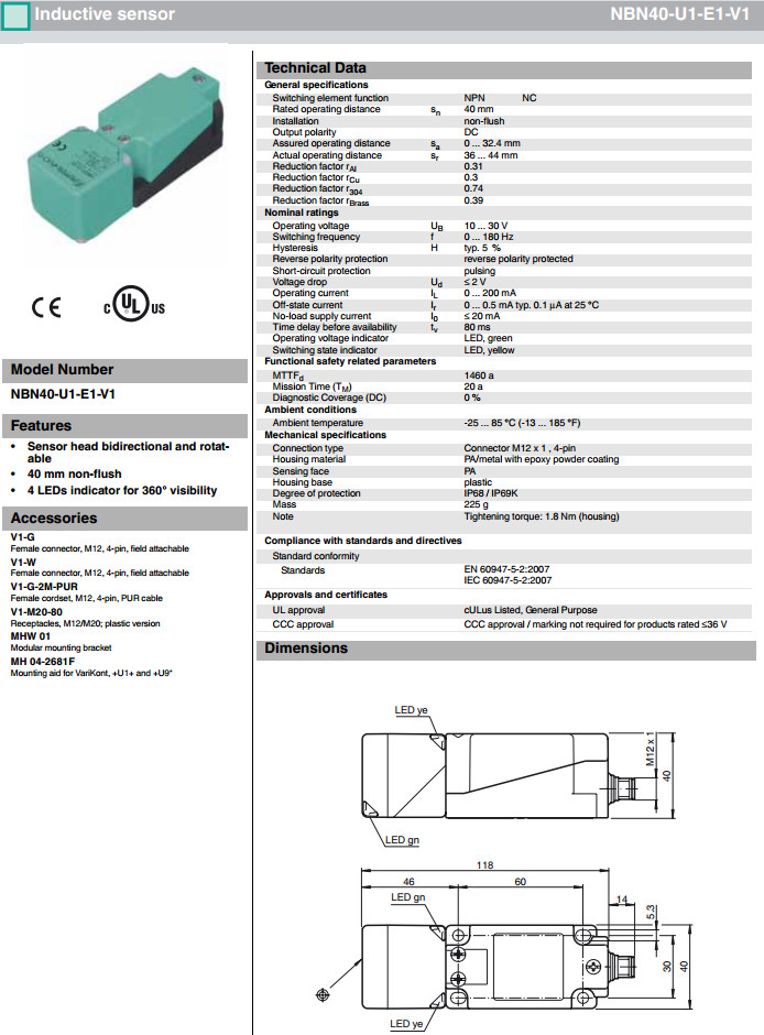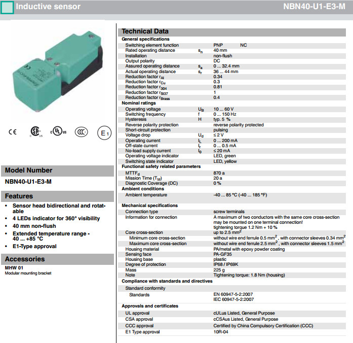NBN40-U1-E1-M,NBN40-U1-E1-V1,NBN40-U1-E3,NBN40-U1-E3-M