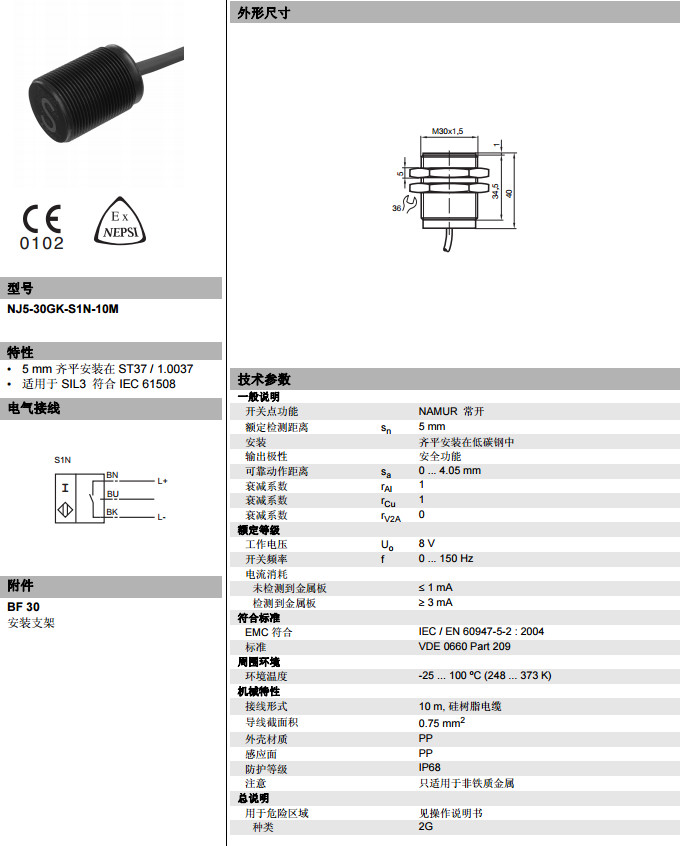 NJ5-30GK-S1N-10M電感式接近開(kāi)關(guān)