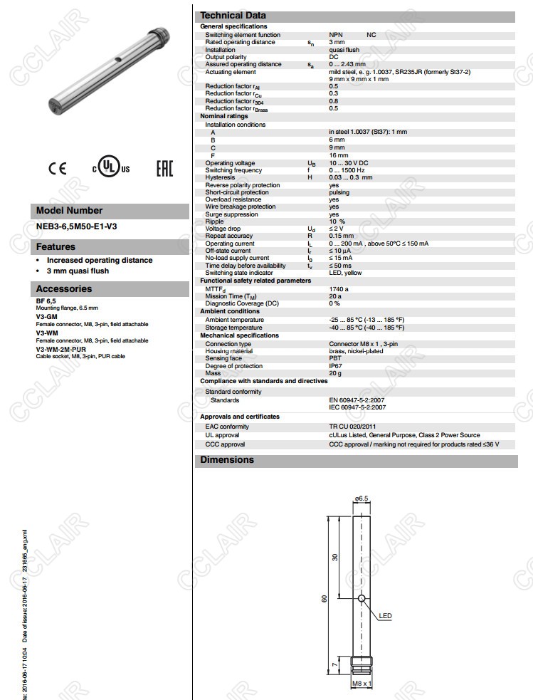 NEB3-6,5M50-E0-V3,NEB3-6,5M50-E1-V3,電感式接近開(kāi)關(guān)