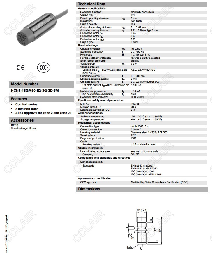 NCN8-18GM50-E2-3G-3D-5M,感應(yīng)式傳感器