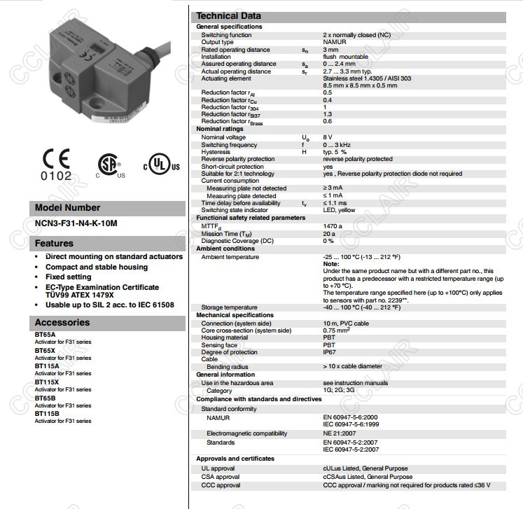 NCN3-F31-N4-K-10M,感應式傳感器