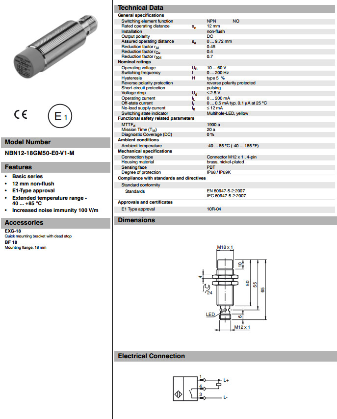 NBN12-18GM50-E0-V1-M電感式接近開關(guān)