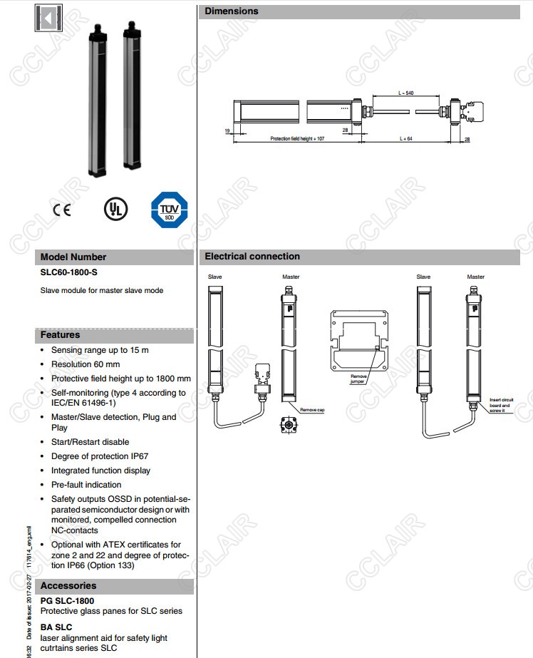 SLC60-1500,SLC60-1500-S,SLC60-1500/31,SLC60-1800,SLC60-1800-S,安全光柵