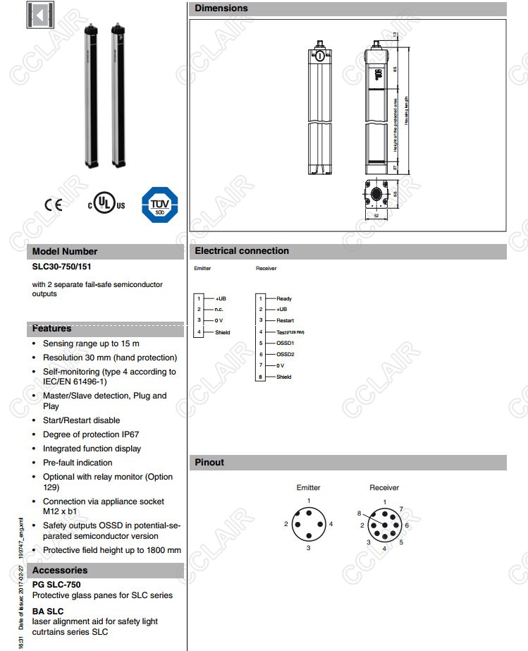 SLC30-750/129,SLC30-750/129/151,SLC30-750/151,安全光柵