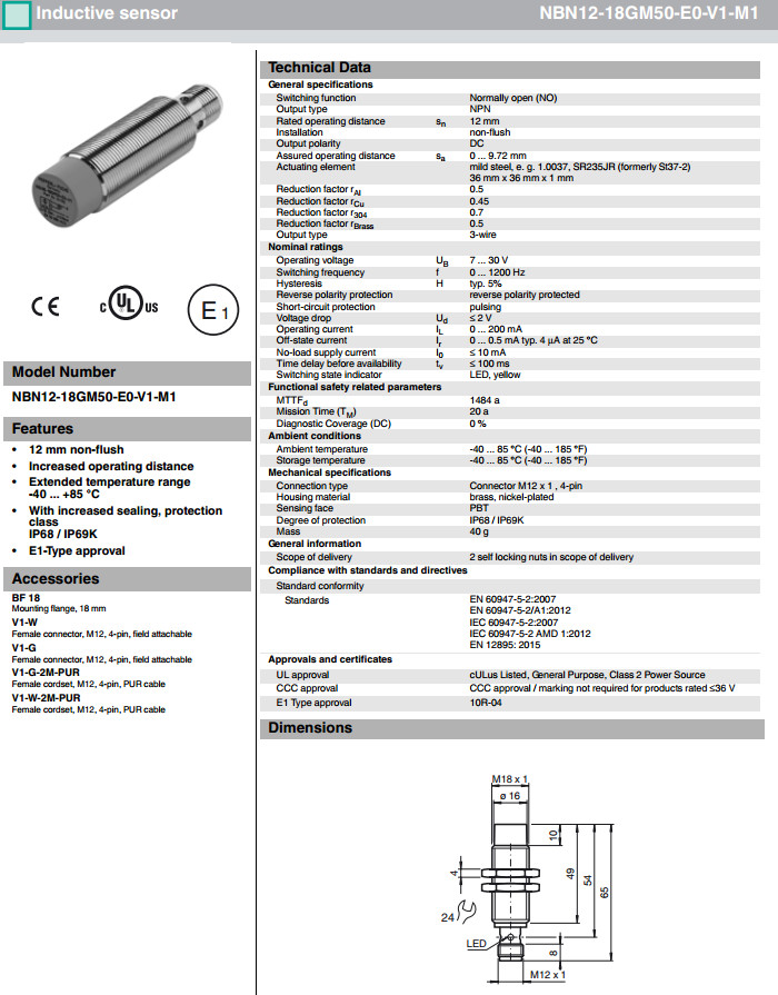 NBN12-18GM50-E0-V1-M,NBN12-18GM50-E0-V1-M1,NBN12-18GM50-E1-V1-M,NBN12-18GM50-E1-V1-M1,NBN12-18GM50-E