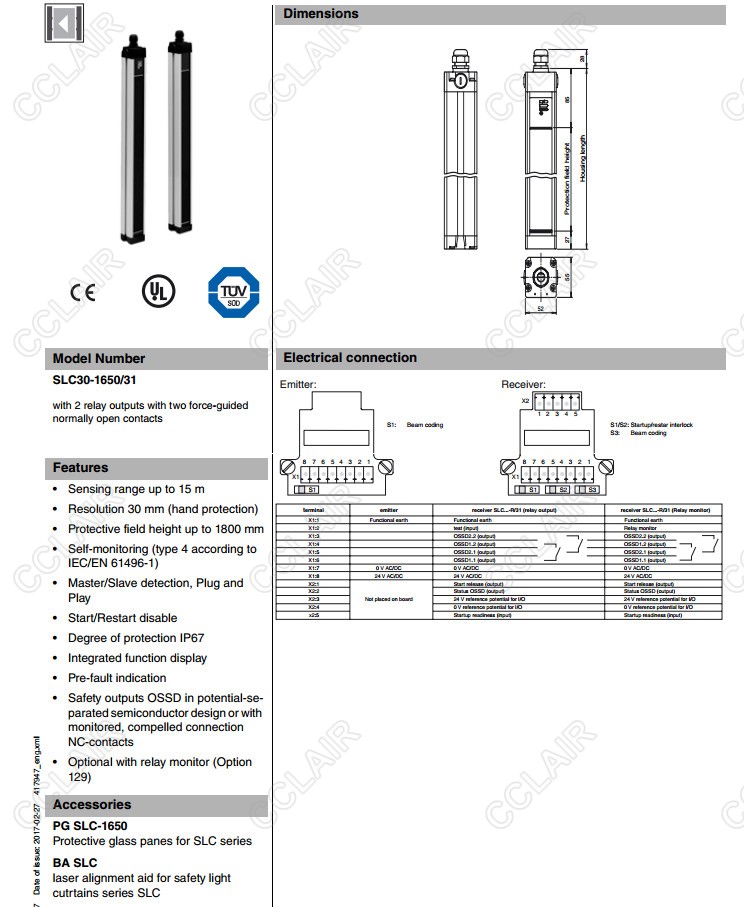 SLC30-1650/31,SLC30-1800,SLC30-1800/31,SLC30-1800/31/130,SLC30-300,SLC30-300-S,安全光柵
