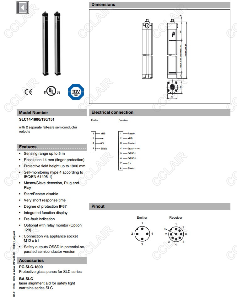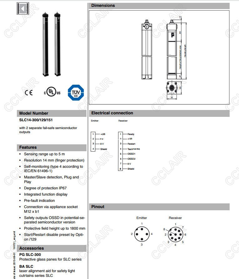 SLC14-1800/130/151,SLC14-300/129/151,安全光柵