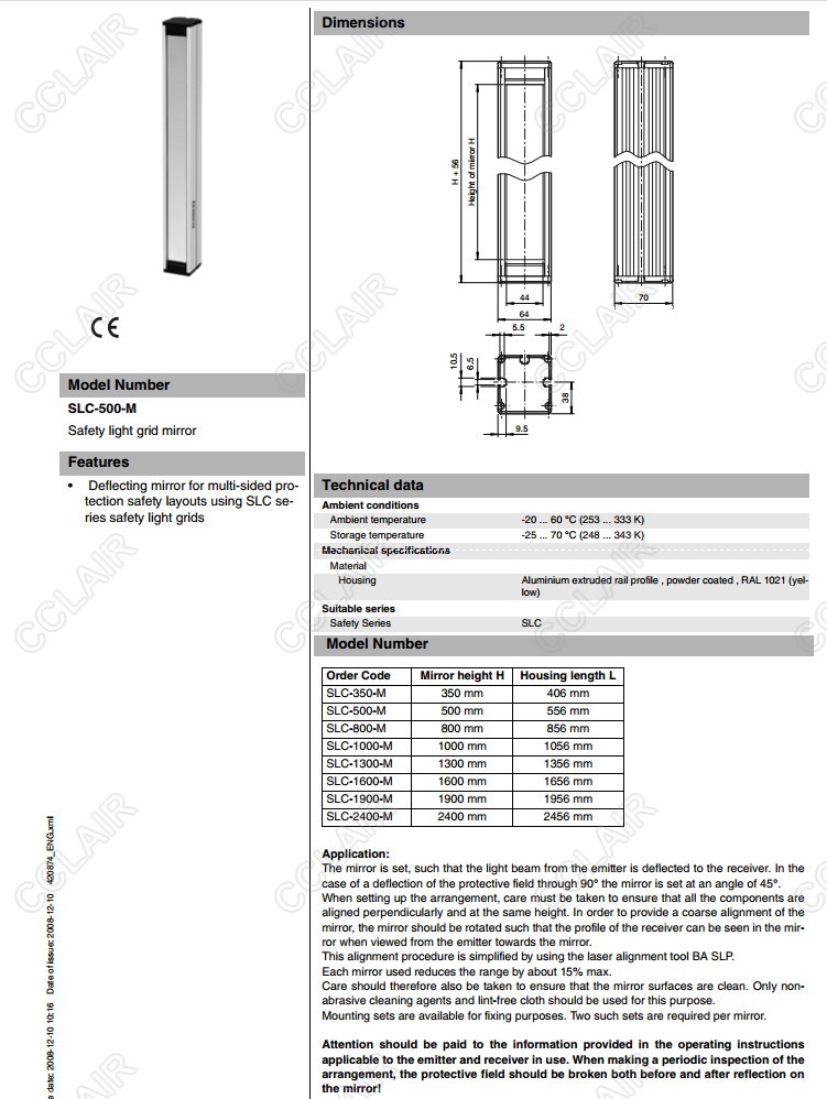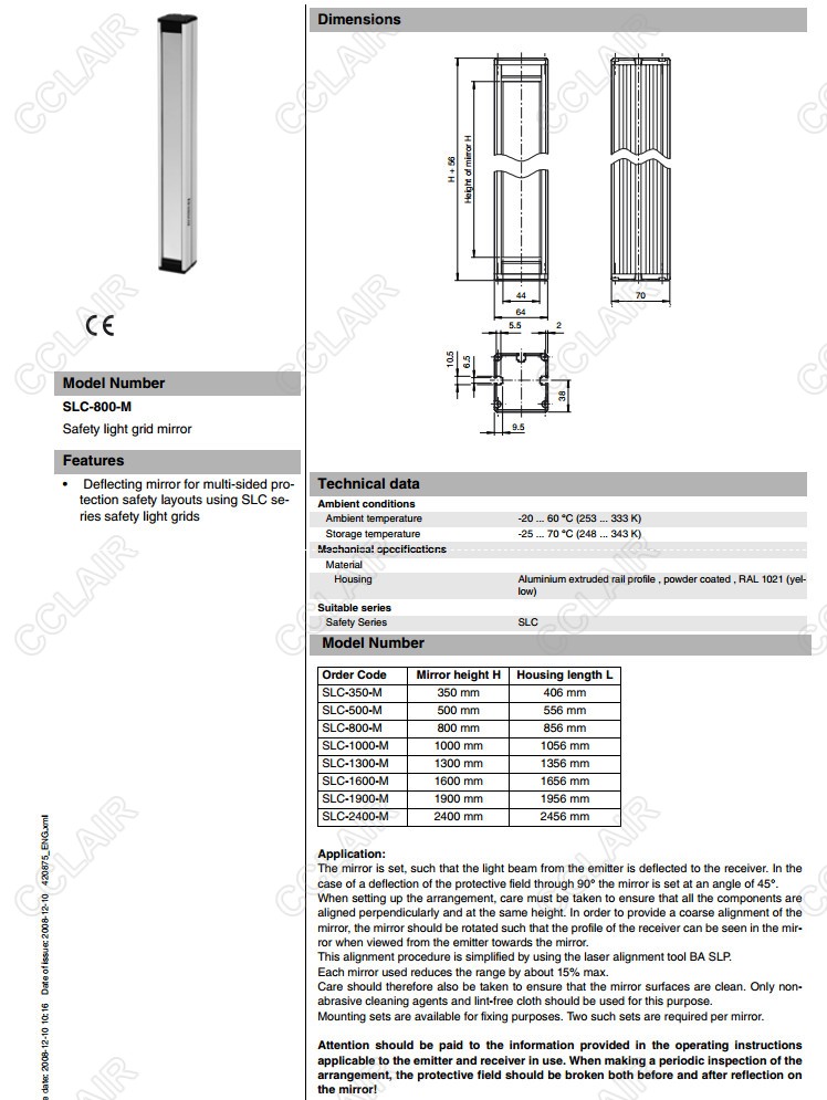 SLC-350-M,SLC-500-M,SLC-800-M,安全光柵反光鏡