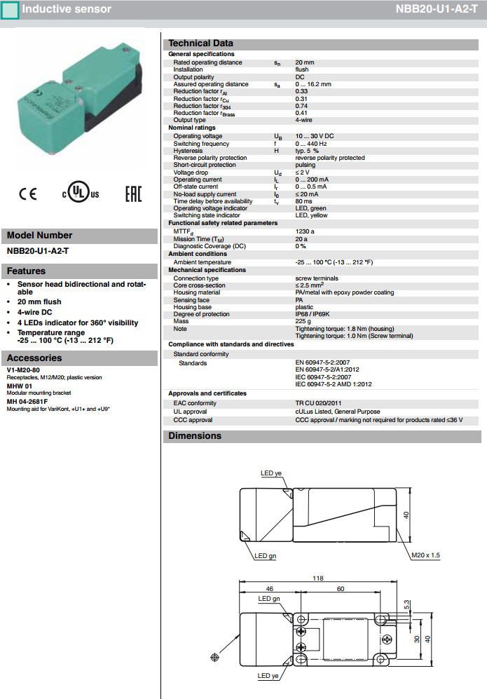 NBB20-U1-A2-M,NBB20-U1-A2-T,NBB20-U1-A2-T-V1
