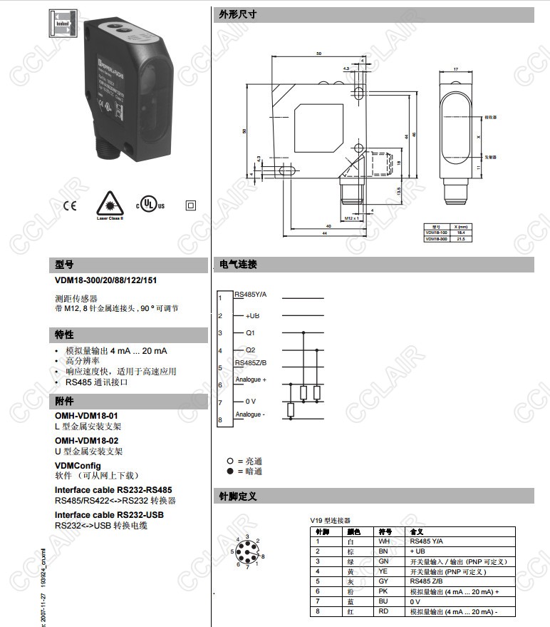 VDM18-300/20/88/122/151,VDM18-300/21/122/151,測(cè)距傳感器