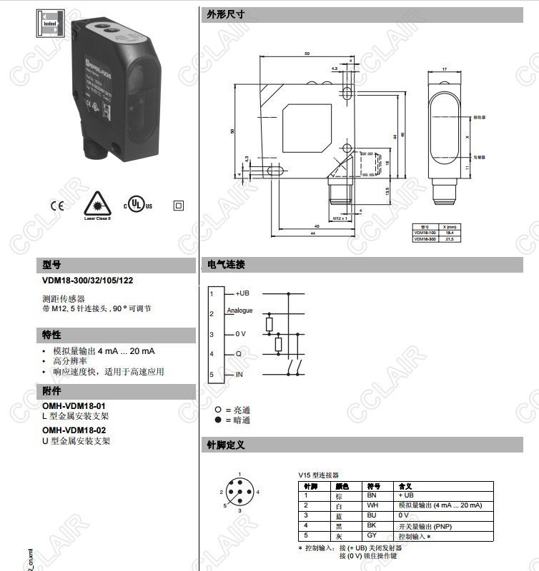VDM18-100/32/105/122,VDM18-300/32/105/122,距離傳感器
