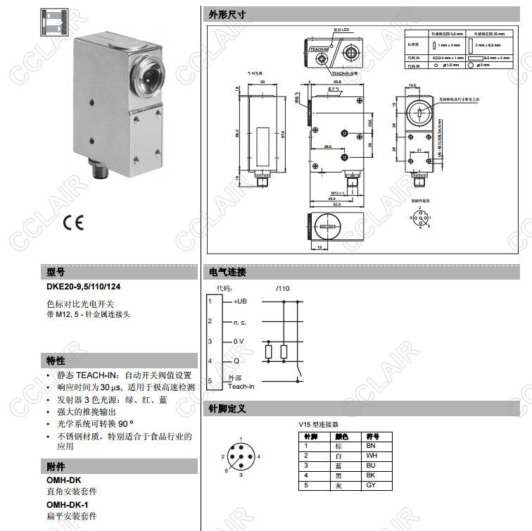DKE20-9,5/110/124,色標(biāo)對(duì)比度傳感器