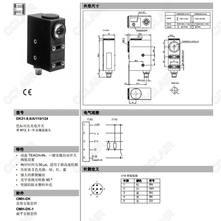 DK21-9,5/110/124,DK21-9,5/9S50/110/124,DK21-9,5/A/110/124,色標(biāo)對比度傳感器