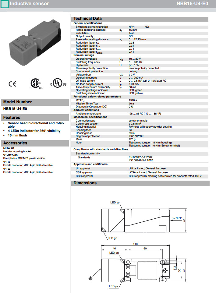 NBB15-U4-E0,NBB15-U4-E2,NBB15-U4-E2-V1