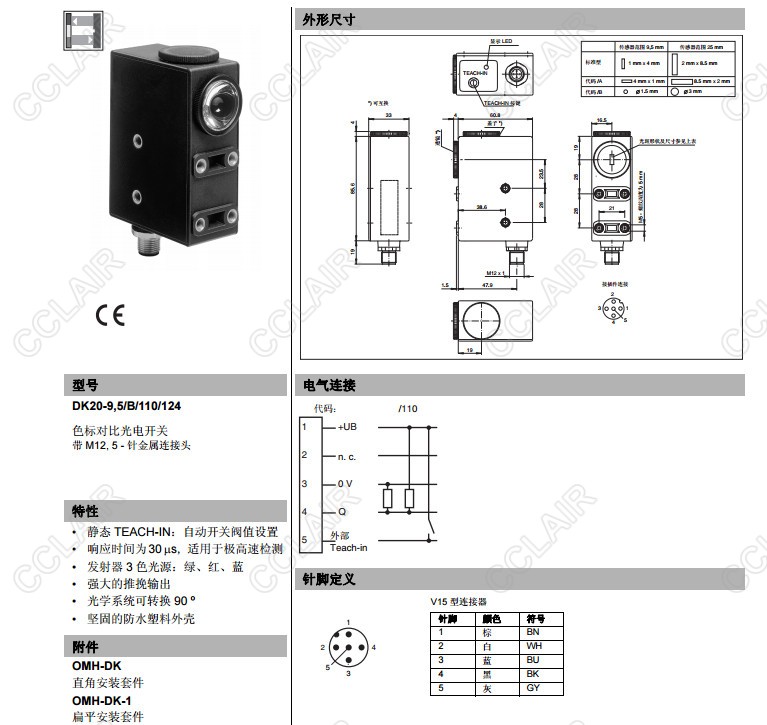 DK20-9,5/110/124,DK20-9,5/A/110/124,DK20-9,5/B/110/124,色標對比度傳感器
