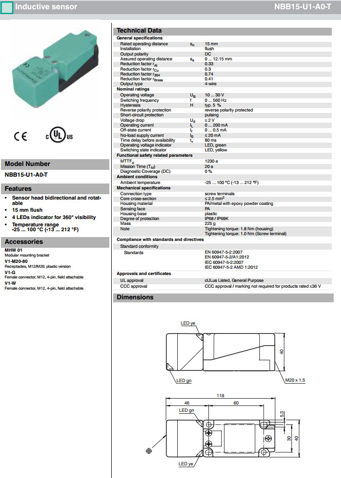 NBB15-U1-A0-M,NBB15-U1-A0-T
