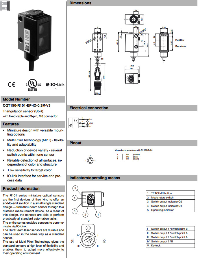 OQT150-R101-EP-IO-0,3M-V3,開關(guān)傳感器