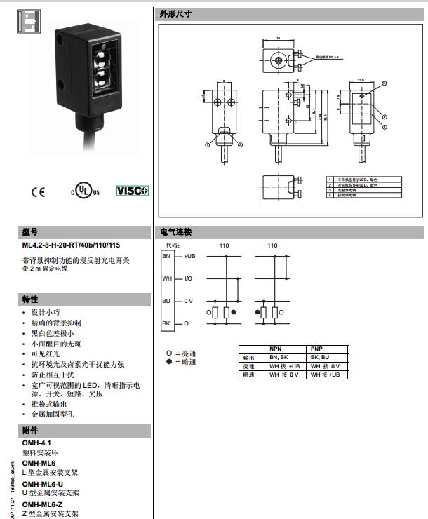 ML4.2-8-H-20-RT/40b/110/115,漫反射型傳感器
