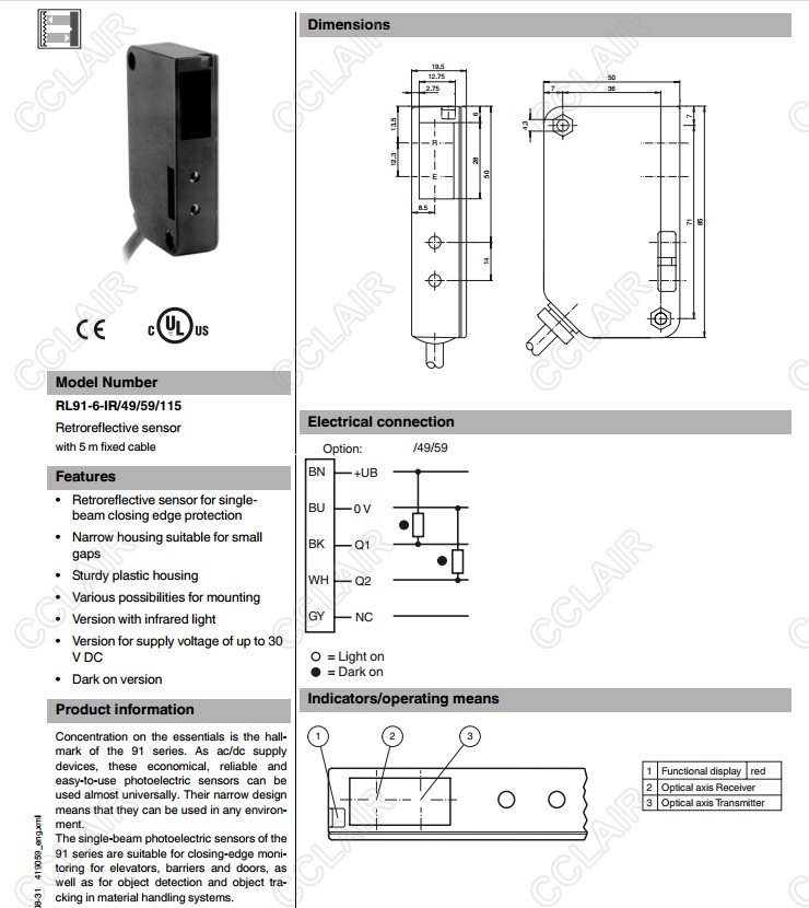 RL91-6-IR/38a/59/115,RL91-6-IR/49/59/115,反射板型傳感器