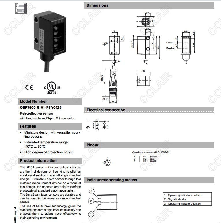 OBR7500-R101-P1-Y0429,反射板型傳感器