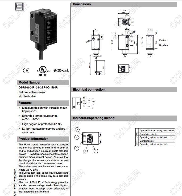 OBR7000-R101-2EP-IO-1R-IR,反射板型光電開關(guān)
