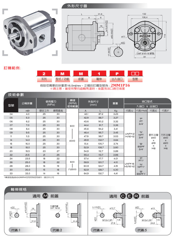 2MM1P20,2MM1P22,2MM1P24,2MM1P26,2MM1P28,HONOR雙向齒輪馬達