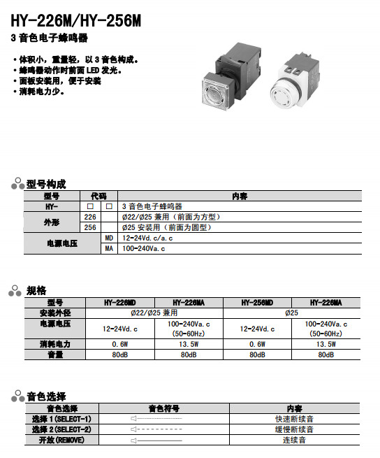 HY-226MD,HY-226MA,HY-256MD,HY-226MA,3音色電子蜂鳴器
