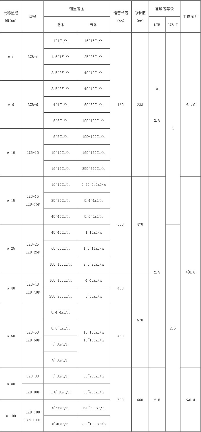 LZB-4,LZB-6,LZB-10,LZB-15,LZB-25,LZB-40,LZB-50,LZB-80,LZB-100,玻璃轉子流量計